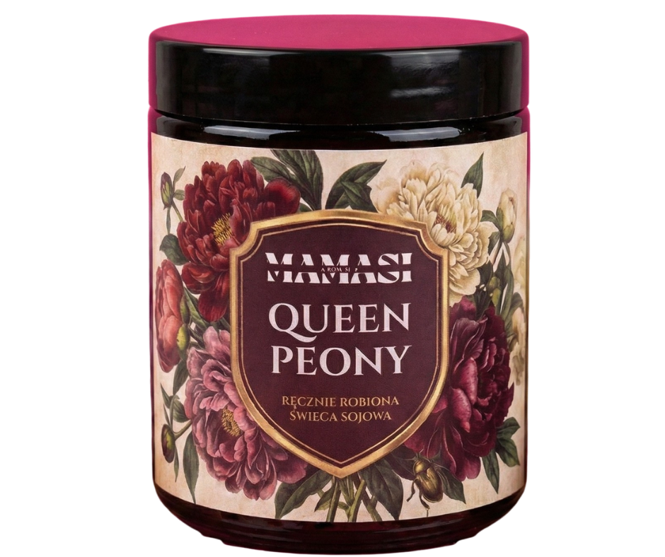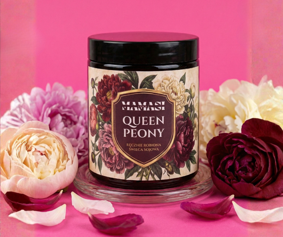 Ręczna Robiona Świeca Sojowa Mamasi „Królowa Piwonia” – Królewski Ogród (200ml)
