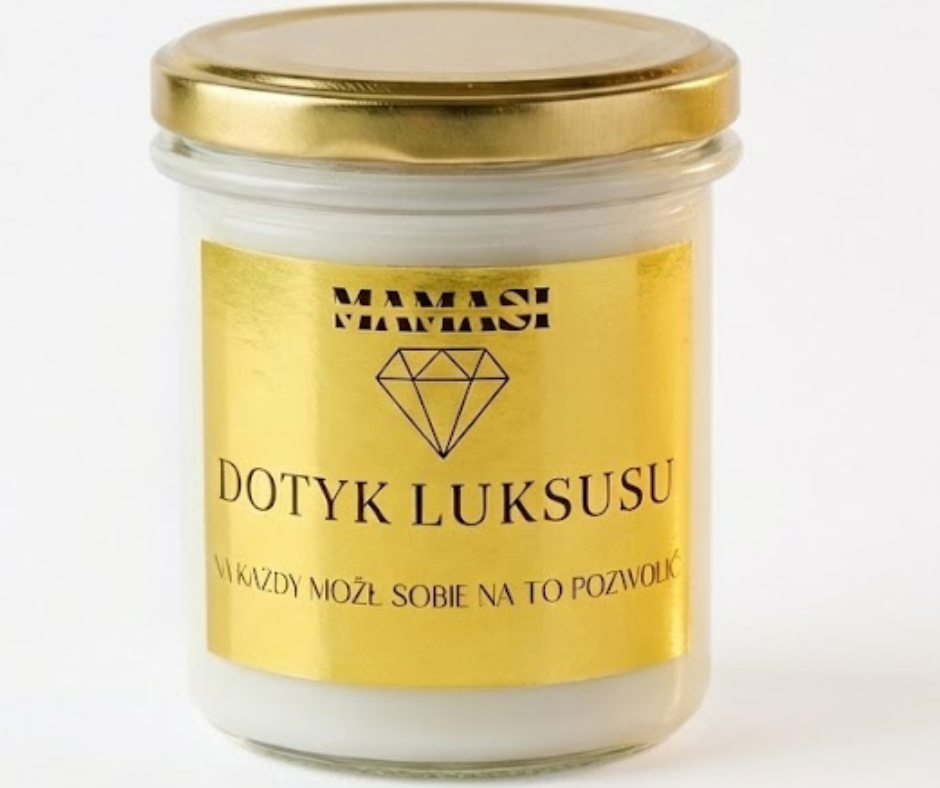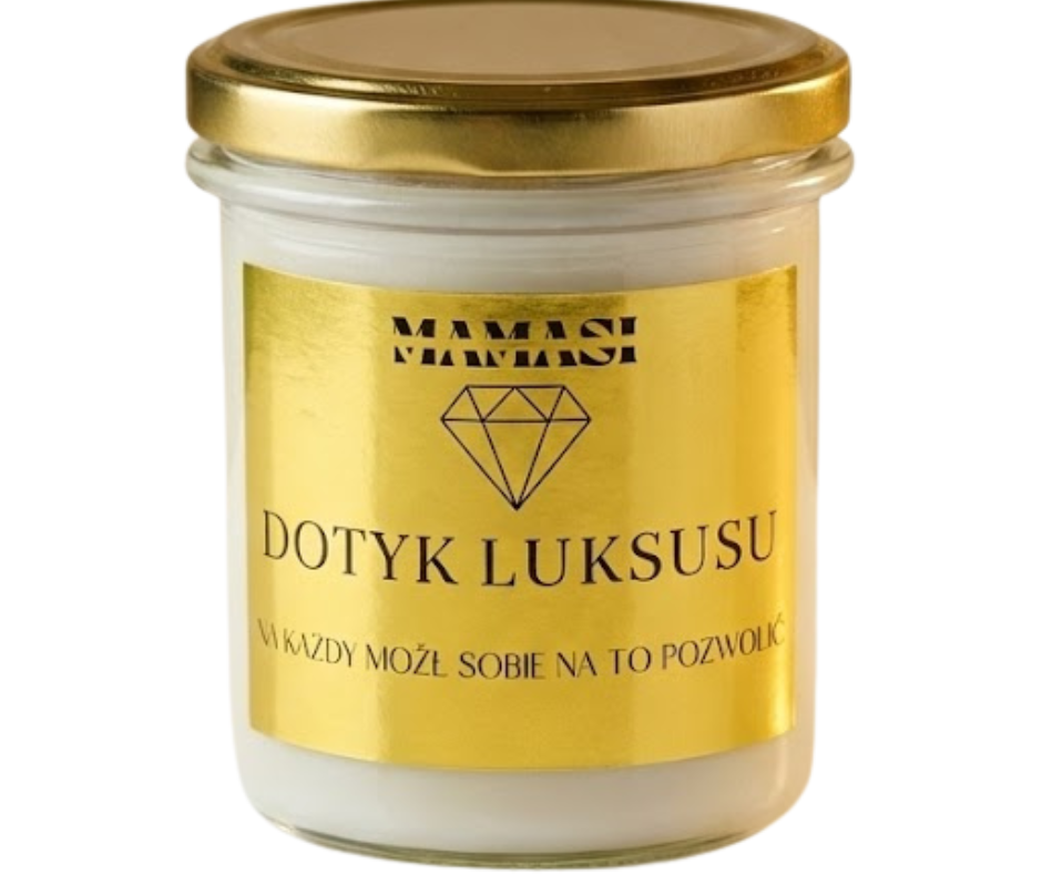 Patrzysz na nią i wiesz jedno: to nie jest zwykła świeczka. Do „Dotyka Luksusu” . Złota etykieta lśnie, a hasło głosi: „Nie każdy może sobie na to pozwolić” . Brzmienie generatoracyjnie? Może. Ale Ty możesz. I właśnie dlatego ta świeca jest dla Ciebie.