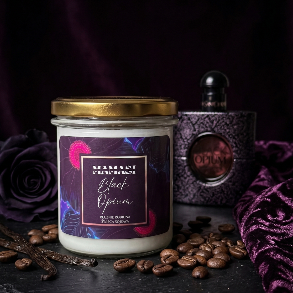 Świeca Sojowa Zapachowa „Black Opium” 300 ml – Wieczorna Zmysłowość i Naturalny Wosk