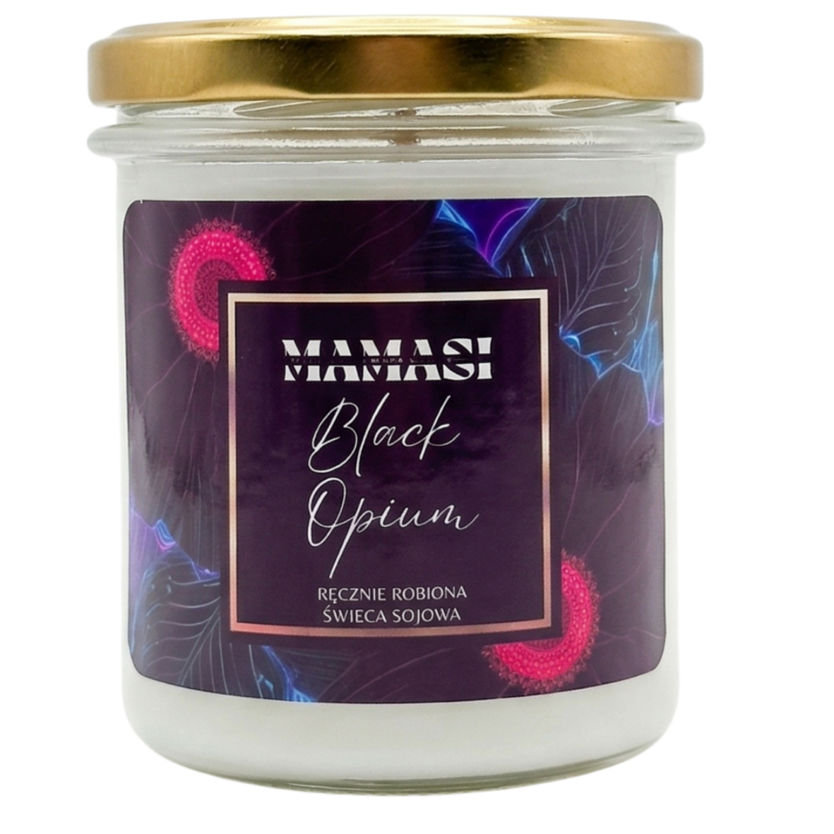 Jako rzemieślnicza pracownia MAMASI wiemy, że tak wykwintne kompozycje wymagają najlepszej oprawy. Naszą dużą świecę „Black Opium” (300 ml) rozlewamy ręcznie, używając wyłącznie w 100% naturalnego, ekologicznego wosku sojowego. Zapomnij o dymiącej, syntetycznej parafinie. Nasz roślinny wosk spala się czysto i wolno, pozwalając złożonym nutom zapachowym uwalniać się powoli, w odpowiedniej temperaturze, by w pełni oddać ich perfumeryjny charakter. To jakość, której nie znajdziesz na drogeryjnych półkach.