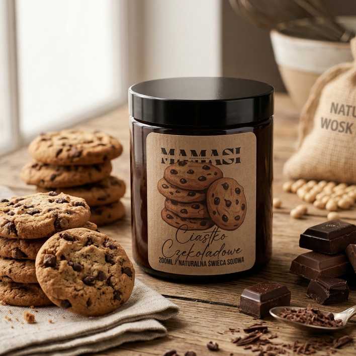 Wyobraź sobie ten moment, gdy otwierasz drzwi do domu, a w powietrzu unosi się obłędny, gęsty aromat świeżo upieczonych, mocno czekoladowych ciastek z płynnym środkiem. Z własnego doświadczenia wiemy, że zapach domowych wypieków to jeden z najszybszych sposobów na poprawę nastroju – działa jak ciepły koc w chłodny wieczór. Nie musisz spędzać godzin w kuchni, by wypełnić przestrzeń tą radosną, beztroską słodyczą. Wystarczy, że odpalisz naszą świecę, a Twoje wnętrze natychmiast zamieni się w przytulną, rzemieślniczą cukiernię. To zapach, który wywołuje uśmiech.