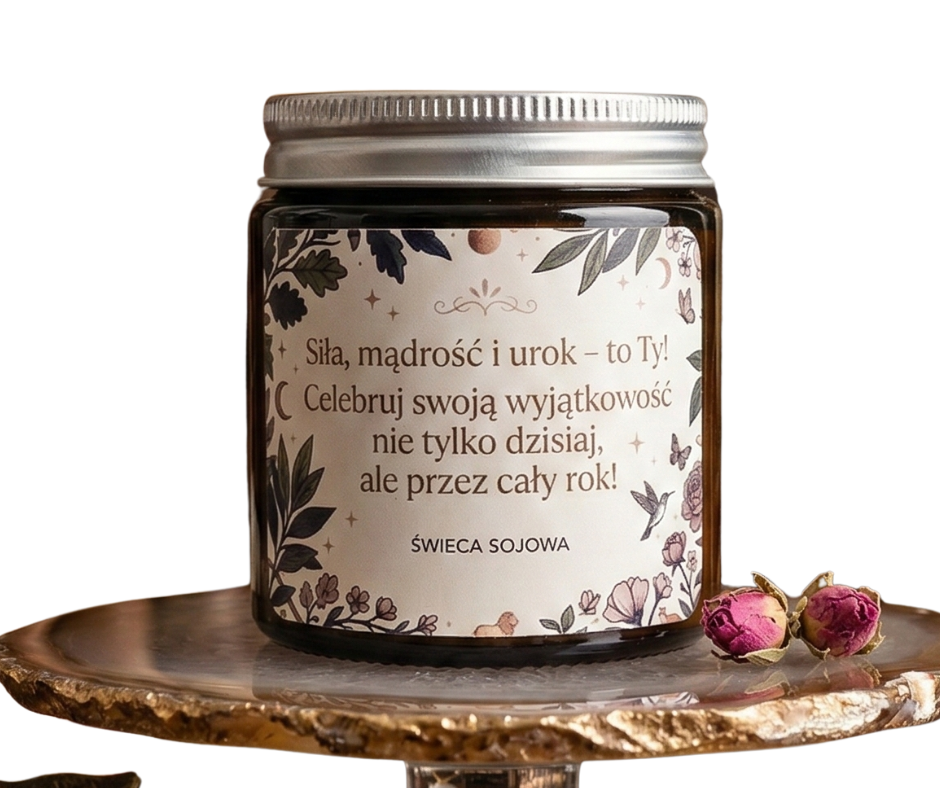 Szukasz wyjątkowego pomysłu na prezent, który wyrazi więcej niż tysiąc słów? Odkryj naszą unikalną świecę zapachową o pojemności 120 ml, stworzoną po to, by inspirować i dodawać energii. Zdobiąca ją etykieta z pięknym, motywującym przesłaniem: „Siła, mądrość i urok – to Ty! Celebruj swoją wyjątkowość nie tylko dziś, ale przez cały rok”, czyni z niej idealny podarunek na Dzień Kobiet, urodziny, rocznicę lub po prostu upominek bez okazji – dla kogoś bliskiego lub dla siebie.